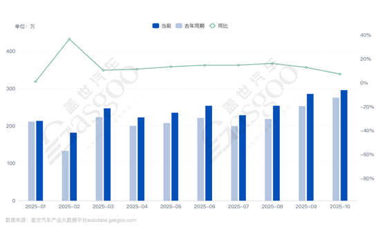 中汽协数据显示,10月,我国汽车销量为332.2万辆,同比增长8.8%。1-10月,累计销量为2768.7万辆,同比增长12.4%。