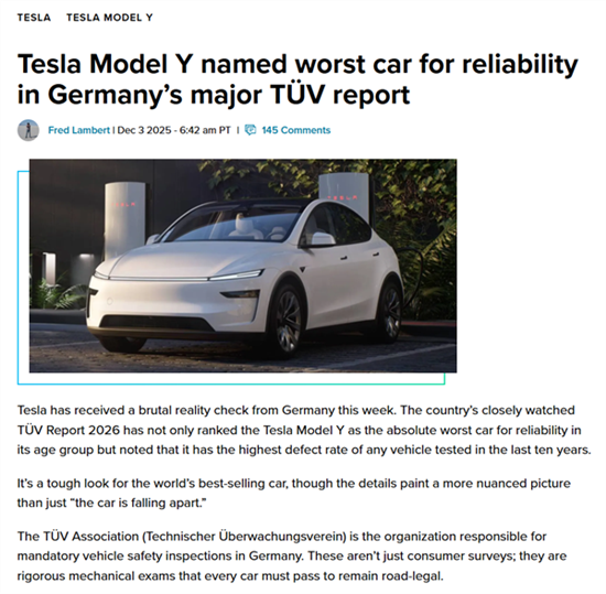 据electrek报道,近日,德国强制车辆安全检验的机构TüV协会发布2026年度报告。