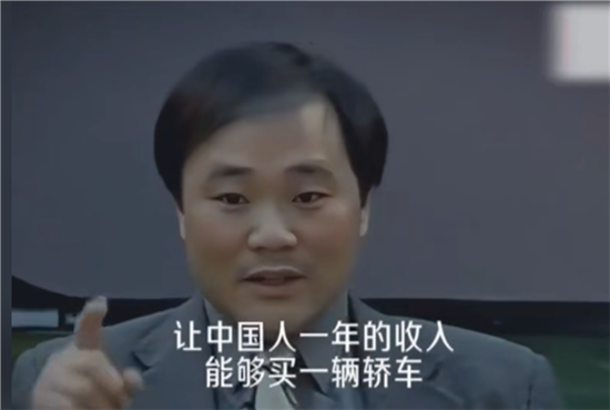 视频中,李书福介绍,在美国,一年的工资收入可以买两辆轿车,而在我们中国,十年的工资收入还买不到一辆轿车,所以这个轿车它普及不了。