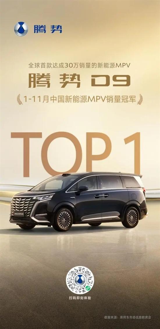 2025年1月-11月,腾势D9累计销售84549辆,再获中国新能源MPV销量冠军。这不仅印证了其在新能源MPV市场的竞争力,更标志着“科技新豪华”已成为时代精英的价值共识。与此同时,腾势D9成为全球首个达成30万辆销量的新能源MPV。