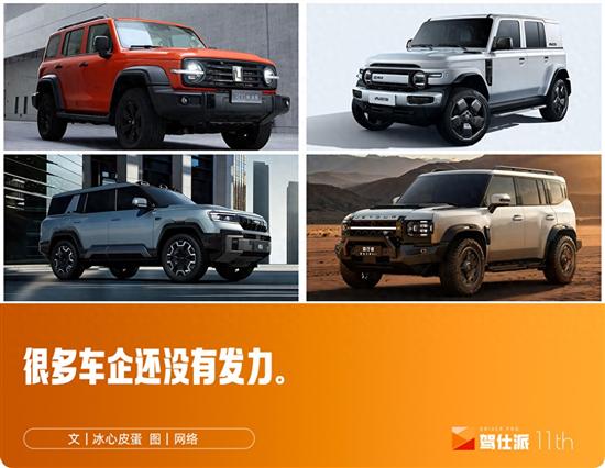 传统的方盒子硬派SUV,类似普拉多、陆巡、卫士等等,尺寸级别大都在C级以上,而在中国品牌进入后这个细分市场后,非承载车身不再是硬性标准,很多车企都基于城市SUV、甚至新能源平台推出了承载式车身的方盒子SUV,尺寸级别一下子就丰富了起来。