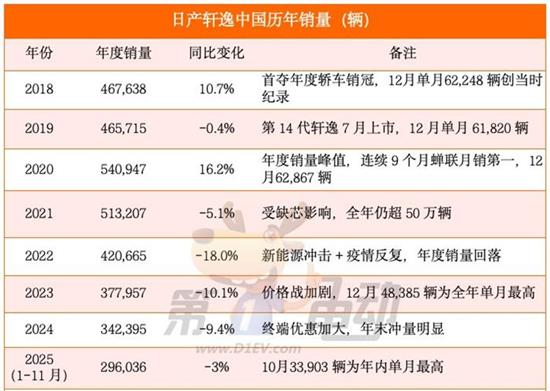 从 2006年正式进入中国市场,到2025年累计销量突破500万辆,轩逸长期占据东风日产品牌总销量的三分之一,堪称品牌当之无愧的销量支柱。