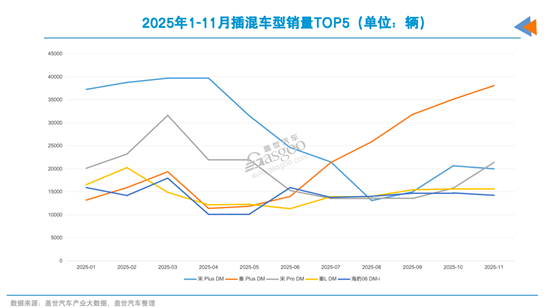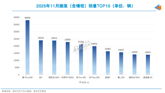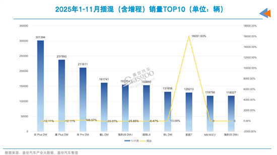 虽然12月销量数据尚未出来,但从1-11月的市场表现来看,2025年插混(含增程)车型销量前十名的格局已基本清晰。