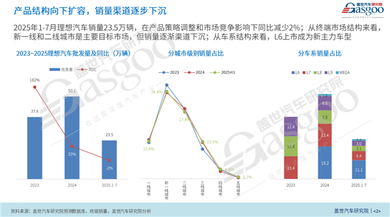 从市场结构看,新一线与二线城市仍是理想汽车的核心销售区域,但销量呈现逐步下沉趋势,反映出渠道拓展策略的推进。产品结构也经历显著调整,L6上市后迅速成为销量新支柱,显示公司正通过价格下探覆盖更广泛的消费群体,以应对市场竞争。整体而言,在销量承压的背景下,理想汽车正通过市场下沉与产品线扩容积极推进战略转型。