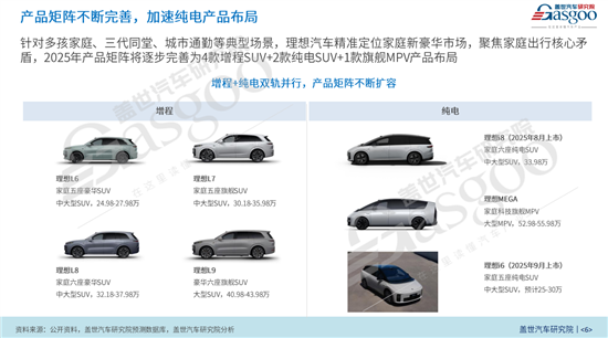 理想汽车通过清晰的产品战略持续深化家庭豪华市场布局。2025年,其产品矩阵形成“4款增程SUV+2款纯电SUV+1款旗舰MPV”体系,覆盖多孩家庭、三代同堂及城市通勤三大核心场景。