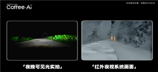 对于众多司机深通恶绝的远光灯下黑场景,红外夜视系统也可完美应对。
