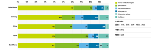 调查还显示,中国消费者的下一辆汽车类型偏好中,燃油车仍是第一位,占比41%,纯电车20%,混动车19%,插混车17%。