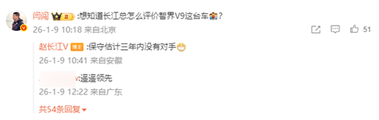 而在评论区回应博主“怎么评价智界V9这台车”提问时,赵长江更是信心满满地表示:保守估计三年内没有对手!