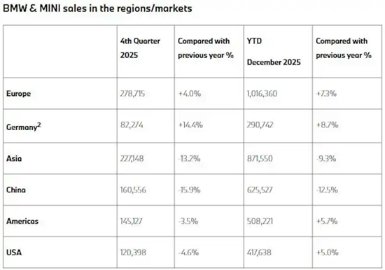 宝马集团近日公布了集团销量。数据显示,宝马2025年全年销量为2,463,715辆,同比微增0.5%。