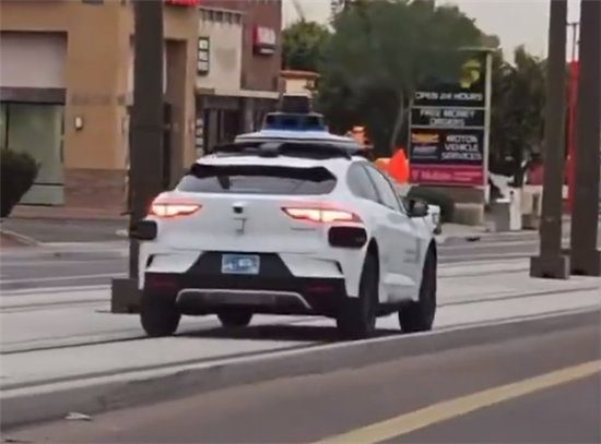 近日在美国亚利桑那州凤凰城,一辆Waymo自动驾驶出租不知道为何突然开到了一条铁轨线上,并且停止不前。