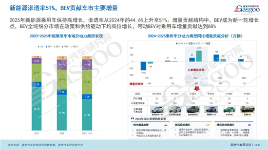 盖世汽车研究院整理的销量数据显示,2025年中国乘用车市场销量已突破3010万辆的历史高位,新能源渗透率跨越51%的门槛,中国品牌不仅在主导着本土市场,出口量也已经跃居全球第一,产业整体量质齐升的成就斐然。