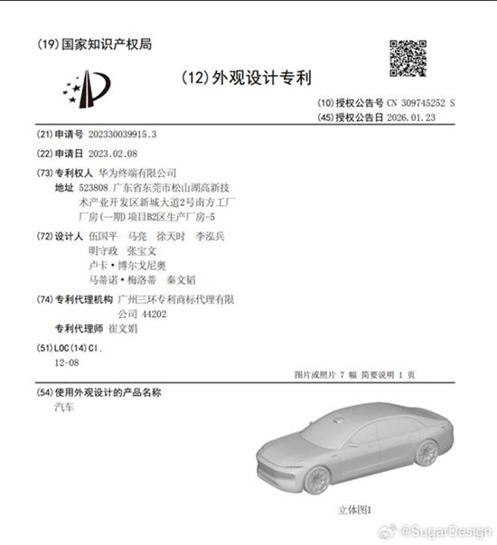 信息显示,专利所有人为华为终端有限公司,设计人共九人,其中包含两名外国人。