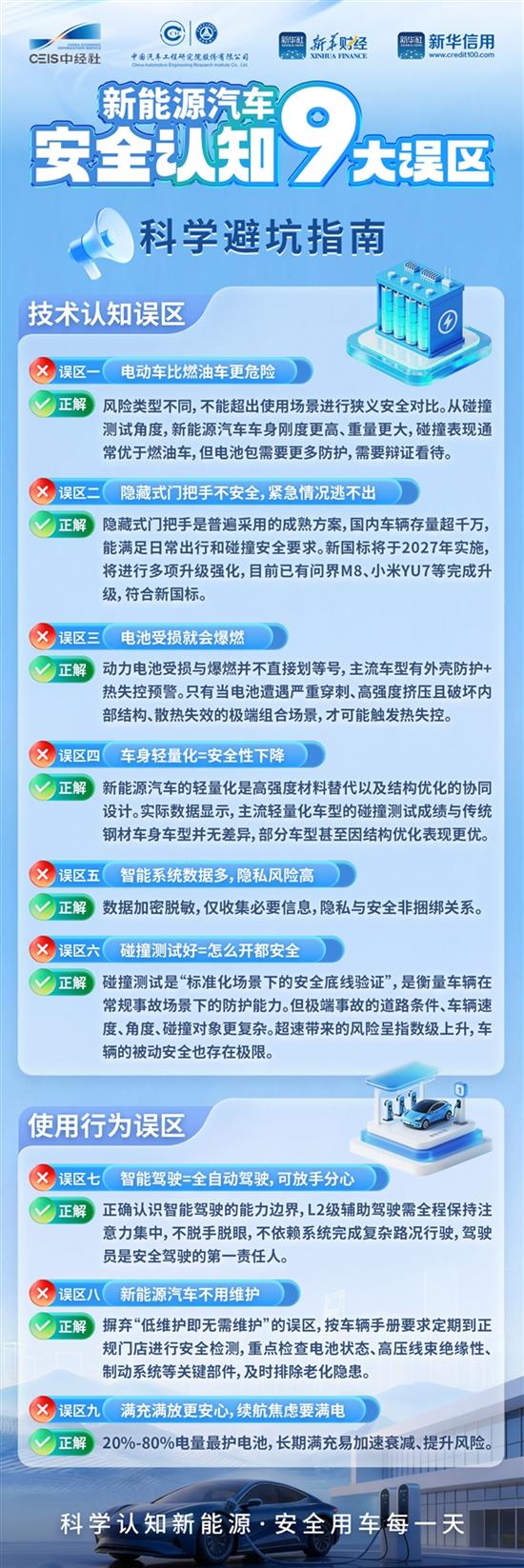 1月26日,中国经济信息社与中国汽车工程研究院联合发布《2025新能源汽车安全认知报告》列出“新能源汽车安全认知9大误区”。