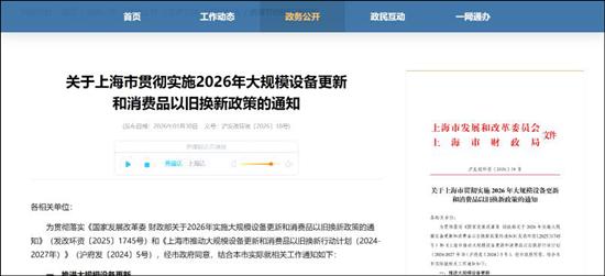 1月30日消息,上海市发改委、上海市财政局发布《关于上海市贯彻实施2026年大规模设备更新和消费品以旧换新政策》(以下简称“《政策》”)的通知,其中提及支持汽车置换更新、支持和规范二手商品交易等内容。