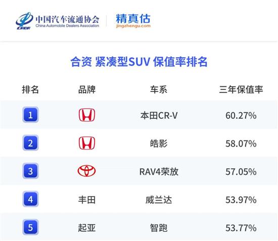 在这场关于价值的终极拷问中,东风本田CR-V再次交出了一份令人侧目的答卷:在最新的中国汽车流通协会保值率报告榜单中,CR-V再度蝉联合资紧凑型SUV保值率冠军,其三年保值率依然坚挺地站在60%以上的高位。这不仅是数字的胜利,更是市场对“买SUV必看CR-V”这一理性共识的再次确认。