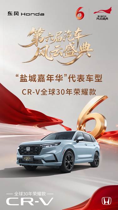 市场表现同样亮眼。2025年,CR-V以全球近 71 万辆、国内累计近19万辆的销量成绩,稳居合资SUV第一梯队,展现出强劲的市场爆发力。与此同时,其品牌影响力持续渗透高端圈层,不仅两度荣获央视《中国汽车风云盛典》“最佳SUV”大奖,更在不久前于盐城举办的第六届盛典中,凭借“CR-V全球30年荣耀款”的卓越综合实力,当选盛典代表车型。这种“销量与口碑双丰收、市场与权威双认可”的格局,在当下分化的车市中尤为罕见。