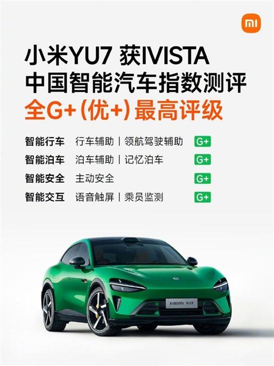 根据IVISTA中国智能汽车指数发布的2026年度最新批次测评结果,小米YU7 Max一举拿下了全G+(极优秀)的最高评级。