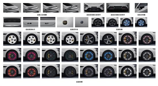 最让人印象深刻的当属琳琅满目的轮辋,足足有几十款之多,真的能让人挑花眼,当然,这也延续了SU7一贯的做法。