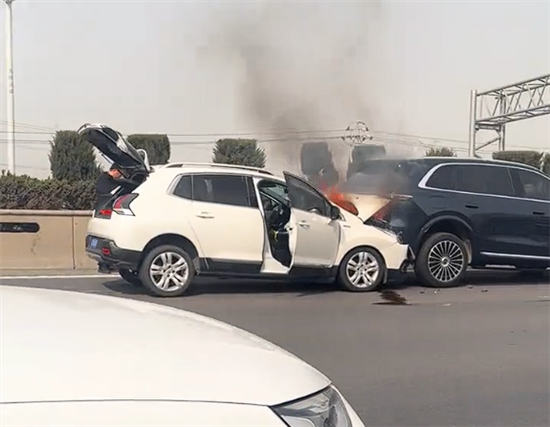 实际上追尾后起火的案例并不罕见,遭挤压后,前舱内的燃油管路有概率被扯断,汽油直接喷溅,形成可燃蒸汽。