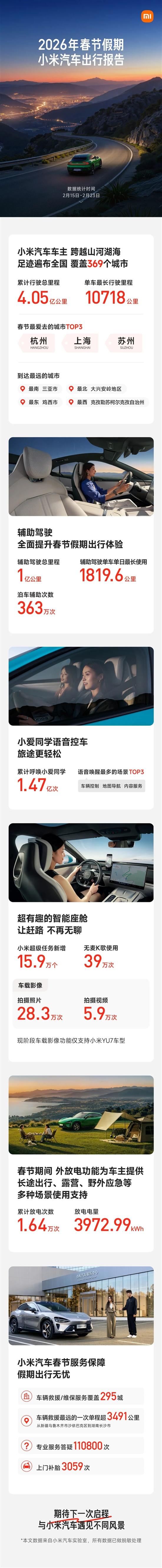 小米汽车正式发布2026年春节假期出行报告。