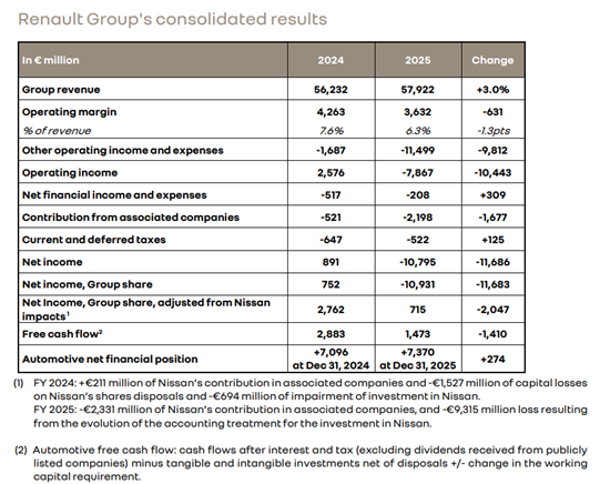 雷诺2025年综合财务业绩;图片来源:雷诺官网