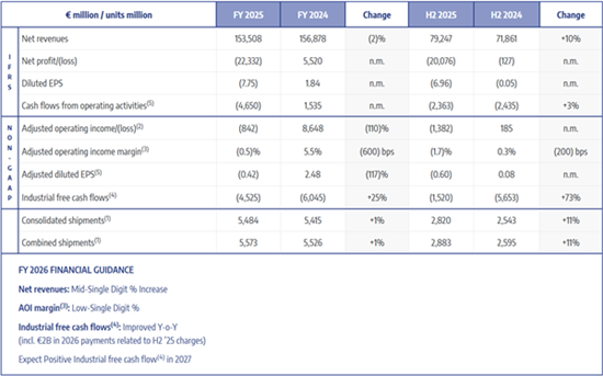 公告显示,此次巨亏核心源于254亿欧元的特殊支出,主要为集团战略调整产生的费用,包括电动汽车产品规划与供应链调整、欧洲区人员精简及合同保修条款优化等,其中约65亿欧元现金支出将在未来四年逐步支付。
