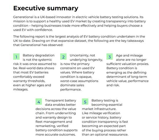 近日,英国电池诊断技术公司Generational发布《2025年电池性能指数》研究报告。