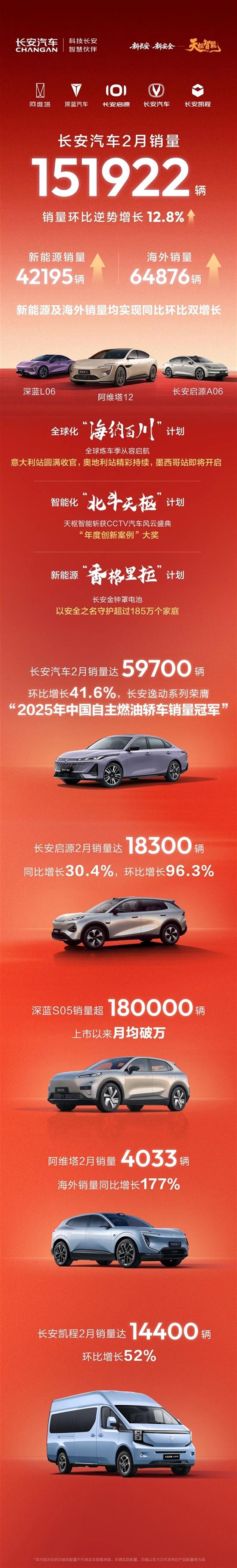 长安汽车发布2月产销数据。