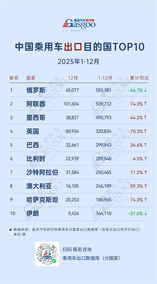 中国是暴露程度最高的主要汽车经济体之一——经过霍尔木兹海峡流向亚洲市场的原油中,中国是其中最大的买家。作为全球最大汽车市场及重要出口国,比亚迪、上汽与奇瑞等品牌正加速全球化。根据#盖世汽车研究院 数据分析,2025年,中国对伊朗出口乘用车已达16.4万辆,向沙特阿拉伯出口乘用车250,465辆,向阿联酋出口乘用车更是高达539,712辆。