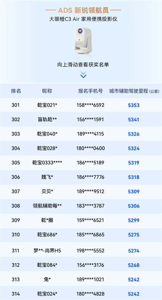 此外还有ADS卓越领航员、高级领航员、新锐领航员等奖项,奖品分别为华为MatePad Pro、华为Watch GT6、大眼橙C3 Air家用便携投影仪等。