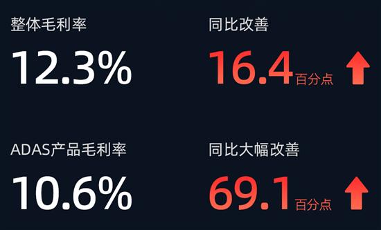 也得益于ADAS应用的激光雷达产品产量规模的增长,一季度速腾聚创实现毛利为4450万元,2023年同期毛损为590万元,整体毛利率业同比改善16.4百分点至12.3%;其中用于ADAS应用的产品毛利为3250万元,2023年同期毛损为4190万元,该产品类别的毛利率从2023年同期的毛损率58.5%,提高至本季度的毛利率10.6%。