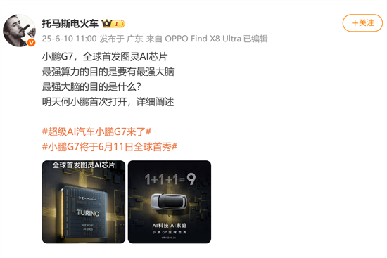 在科技飞速发展的当下,小鹏汽车再次成为行业焦点。6月10日,小鹏汽车宣布其全新车型小鹏G7全球首发图灵AI芯片,并宣称“划时代超级AI汽车来了”,这一消息迅速在汽车界和科技界引发广泛关注。