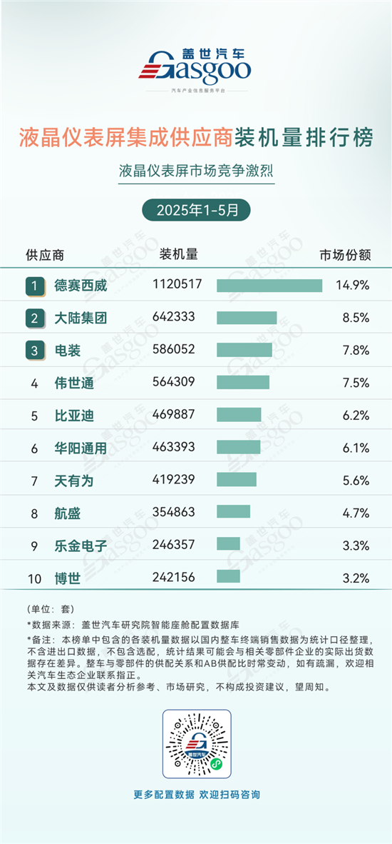 液晶仪表屏集成供应商装机量排行榜