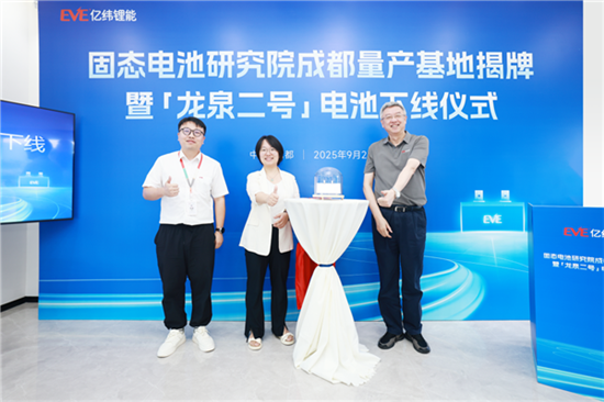 近日,亿纬锂能固态电池研究院成都量产基地正式揭牌,最新产品“龙泉二号”成功下线。