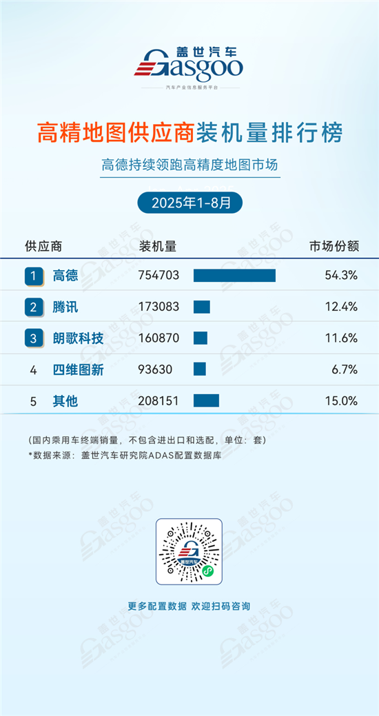 高德,2025年1-8月装机量754703套,市场份额54.3%;