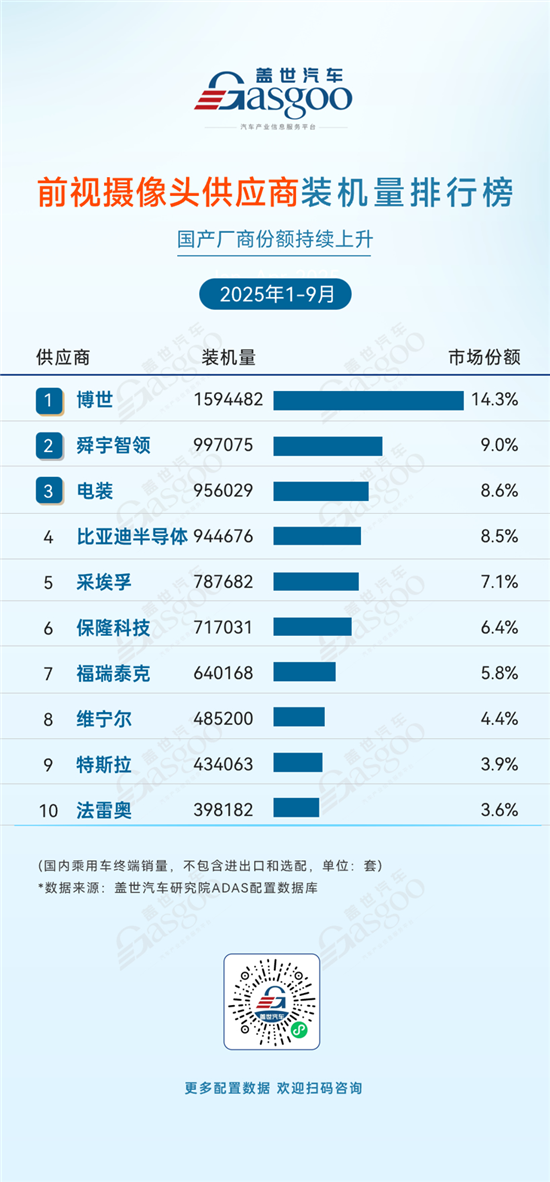 这一格局诠释了国内汽车零部件产业的进阶路径:从外资品牌长期主导,到国产厂商在感知硬件领域的快速突围,前视摄像头市场的 “国产化替代” 进程正持续深化,行业 “国产崛起、外资深耕、多方共赢” 的新生态已逐步成型。