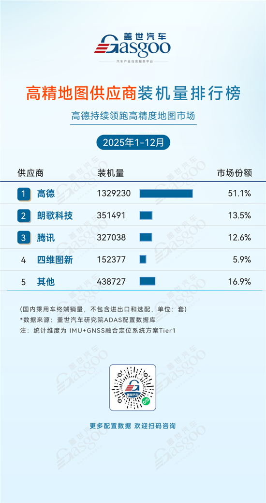 高德,2025年1-12月装机量1329230套,市场份额51.1%。