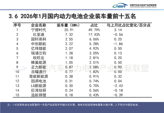 谈及市场格局,宁德时代与比亚迪的“双王主导”依然是无法绕开的主题。从电池联盟最新发布的1月装车量数据来看,这一格局非但未被撼动,反而在淡季中显得愈发稳固。