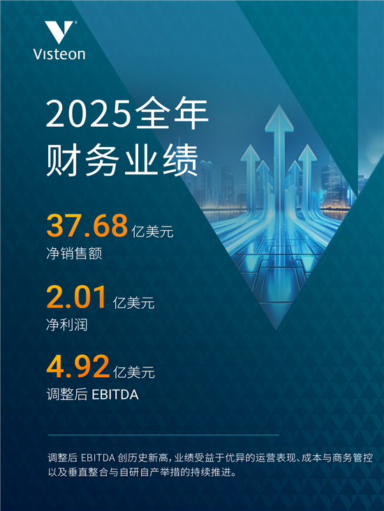 财务数据方面,伟世通2025年第四季度净销售额达9.48亿美元,全年净销售额37.68亿美元。盈利端,四季度净利润7400万美元,全年净利润2.01亿美元。盈利能力表现突出,四季度调整后EBITDA为1.10亿美元,全年该指标攀升至4.92亿美元,创下历史新高,展现出强劲的盈利韧性。