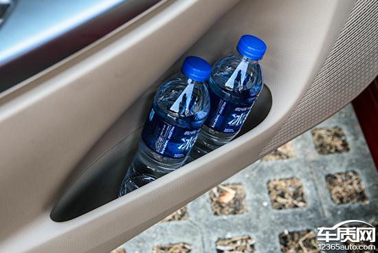 门板储物槽的表现可谓是各有千秋,前排储物槽空间较大,里面布局明确,同时可以放下两个600ml的饮料瓶,而前沿虽然开口较窄放不下饮料瓶但依旧可以放置钱包、零钱等小物件。而后门板上压根就没有配备门板储物槽,对于后排乘客来说可以储物的地方只有中央扶手箱后方的一个杯架而已,对后排乘客照顾欠妥。
