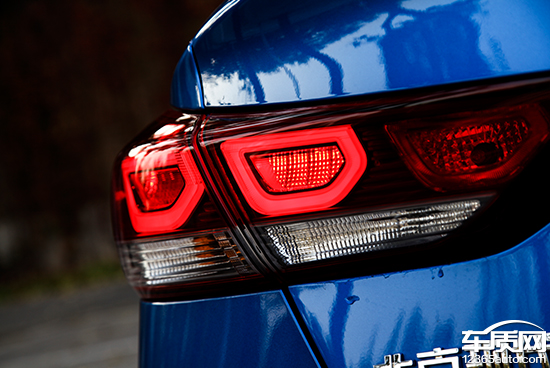 从上翘的车尾不难看出它与朗动之间的联系,宽大的车尾与底部黑色扰流板融为一体,单边双出的尾喉则证明自身涡轮增压的身份。LED尾灯更是如画龙点睛一般,但内部造型点亮之后相对简单,新意稍显不足。