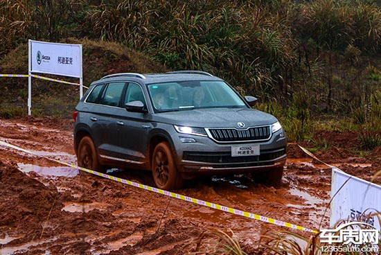没有车身稳定控制系统的帮助下,车轮打滑和转向过度的情况基本属于常态,此时对四驱系统动力分配能力是严苛的考验。然而对柯迪亚克而言,借助EDS电子限滑装置,这一切显得太过轻松,伴随泥浆迸起,该车顺利从水坑中冲出。