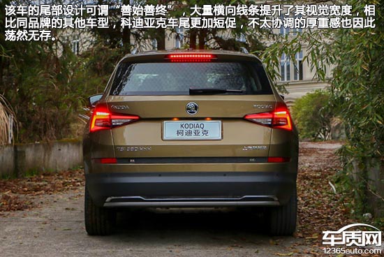 该车的尾部设计可谓“善始善终”,大量横向线条提升了其视觉宽度,相比同品牌的其他车型,柯迪亚克车尾更加短促,不太协调的厚重感也因此荡然无存。灵感源自冰面的3D尾灯造型颇为前卫,斯柯达家族式C字形灯带点亮后极具辨识度,而应用光导纤维技术在保证亮度的基础上,使光线更加柔和,从而减少对后方驾驶员的干扰。