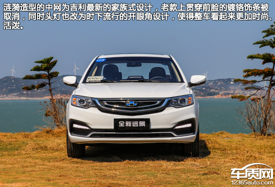 全新远景与老款车型在外观的设计上有着明显改变,通过对细节的“再加工”使它与老款车型呈现出截然不同的氛围。涟漪造型中网为吉利最新家族式设计,老款贯穿前脸的镀铬饰条被取消,同时头灯也改为时下流行的开眼角设计,使得整车开起来更加时尚、活泼。