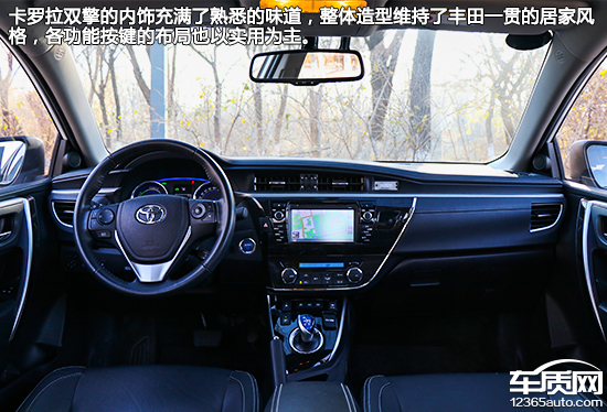 进入卡罗拉双擎的车内,风格居家的内饰设计给人一种亲近感,各功能按键的位置也都十分合理,即使你从未接触过丰田旗下车型,也几乎没有任何上手难度。