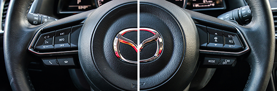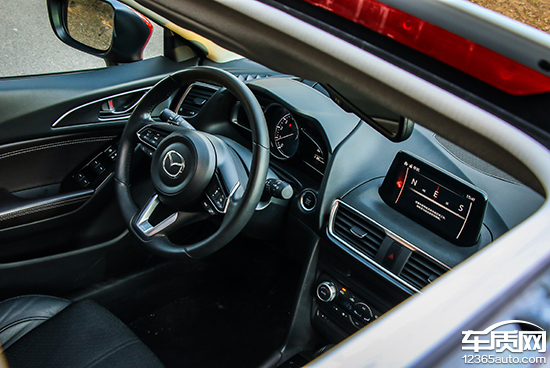 2017款昂克赛拉内饰基本沿袭了老款车型的布局,不过方向盘和中控台处的饰条进行了小幅调整,并更换为亚光材质,视觉感受更加简约且富有条理性。而在用料和做工方面,该车与同级的日系车型水平相当。