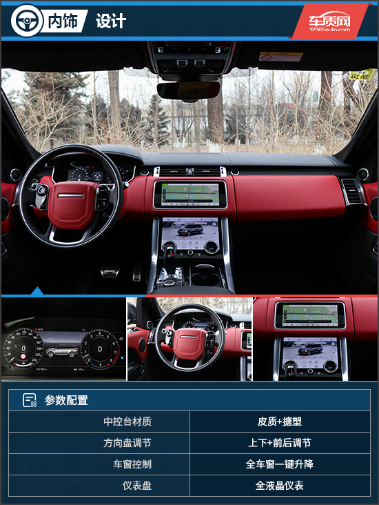 内饰方面,揽胜运动还是延续了非常典型的路虎家族式设计,进到车内一种特有的“慵懒豪华”扑面而来,十分高贵大气。虽是一款运动车型,但揽运却并没有在内饰设计上过于追求所谓的运动元素,完全没有激进的设计,依然坚持了揽胜车型独有的王者气质和从容不迫。