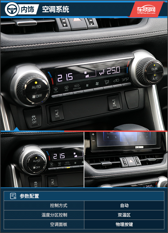 空调控制区域采用了传统的物理按键形式,配合独立显示的屏幕,操作十分简单。硕大的旋钮外侧覆盖了橡胶材质,再加上适中的阻尼力度,不仅好用而且还很有品质感。自动双温区空调的配置符合预期,而车内PM2.5过滤装置的加入则无疑会成为一个加分项。