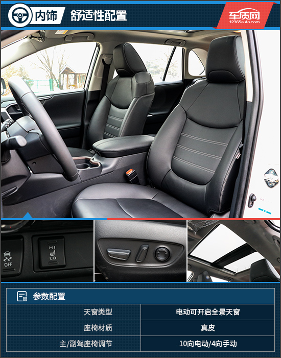 作为一款SUV车型,全新丰田RAV4荣放依然延续了其在舒适性方面的优良传统,整体表现相当出色。座椅宽大舒适,乘坐感受非常好,而且前排座椅还配有加热功能。比较遗憾的是座椅电动调节功能仅有主驾驶位才会提供,这样的区别对待本不应该出现,尤其是对于顶配版本车型来说。