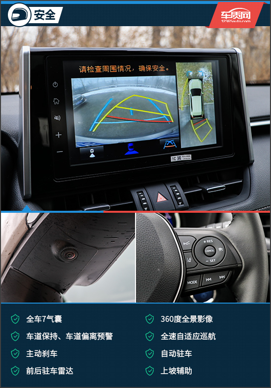 完善的主被动安全系统能够给驾乘人员充分的保护,至少从心理上来说,还是很有安全感的。就一些实用性的安全配置来看,例如倒车影像系统,虽然360度全景影像能够方便驾驶员观察车辆周边情况,但影像显示效果以及界面的设计确实太“拉胯”了,可以说是毫无美感可言。虽然这本就是实用性的配置,但在好用的基础上,也确实是应该注意提升一下美观程度。